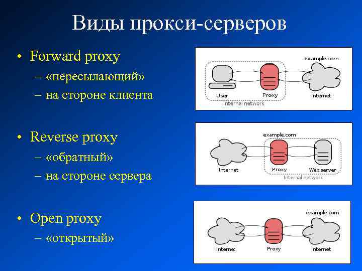 Существует несколько видов прокси-серверов, каждый из которых имеет свои особенности: