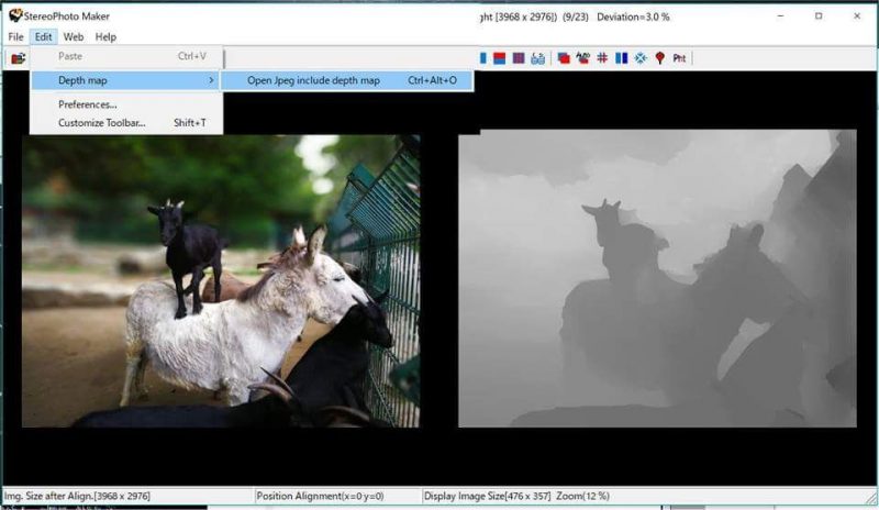 StereoPhoto Maker позволяет создавать 3D-эффект даже при отсутствии реальной стереопары, используя 2D-изображение и отдельно заданную глубинную карту (depth map).