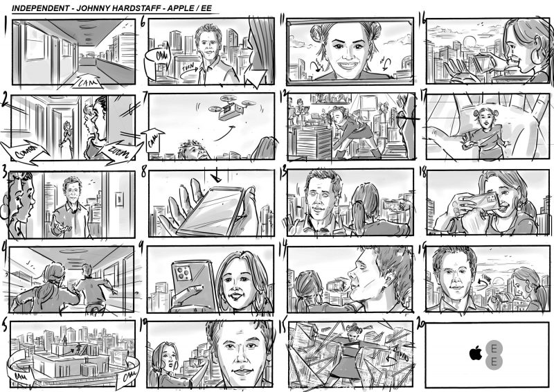 Сториборд — это визуальный сценарий, состоящий из последовательных изображений или кадров, демонстрирующих ключевые сцены или этапы действия. Это нечто среднее между комиксом и черновиком будущего видеоматериала или презентации. Каждое изображение обычно сопровождается краткими комментариями: диалогами, описанием действия, указаниями для камеры.