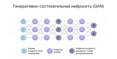 Генеративно-состязательные сети (GAN) представляют собой радикально иной подход к обучению нейросетей. Вместо того чтобы учиться на готовых парах «вход-выход», GAN состоит из двух сетей, вовлеченных в постоянную игру: генератора и дискриминатора. Генератор стремится создавать поддельные данные (например, изображения), которые были бы неотличимы от реальных, в то время как дискриминатор пытается отличить подделку от оригинала. В процессе этого состязания обе сети постоянно улучшаются: генератор становится все более искусным в создании реалистичных данных, а дискриминатор — в их распознавании.